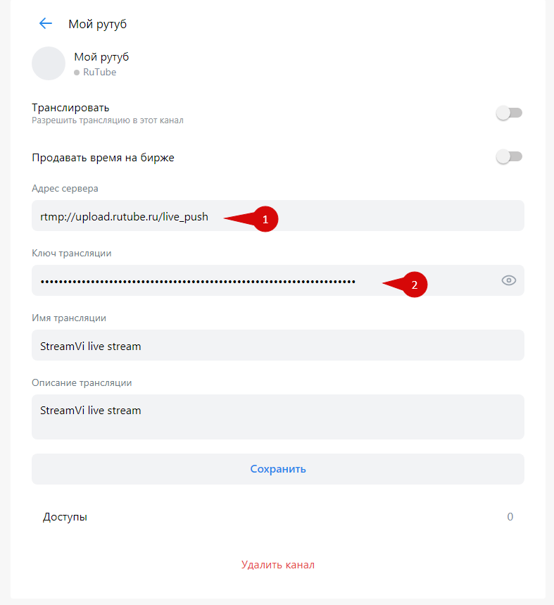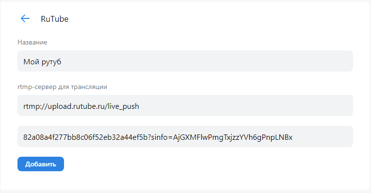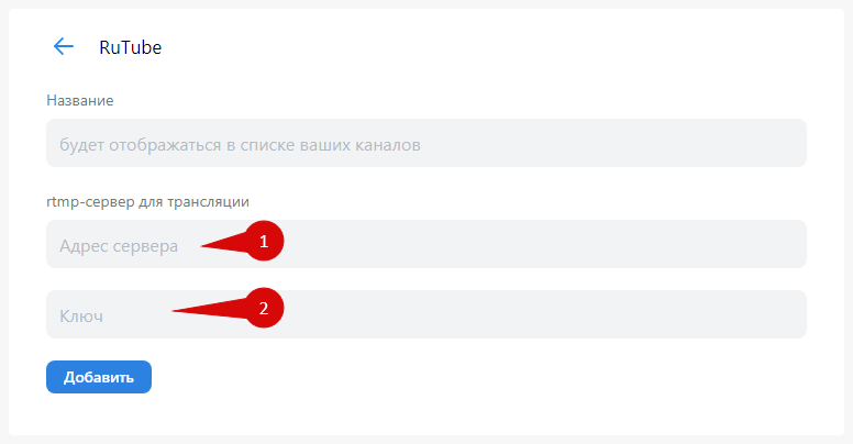 [Нажмите кнопку "Добавить" в разделе "Каналы"](https://help.streamvi.ru/instrukcii/dobavlenie-kanalov) > Выберите "RuTube"